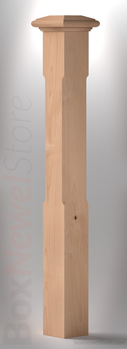 Box Newel Store Classic Clear Alder Box Newel, SFI Classic Cap with Cove, Chamfor Panels