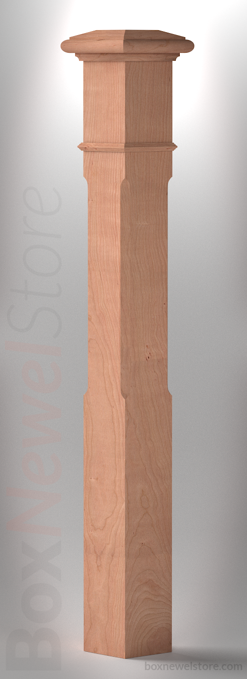Box Newel Store Classic Cherry Box Newel, SFI Classic Cap with Cove, Chamfor Panels, Pencil Mold Trimband