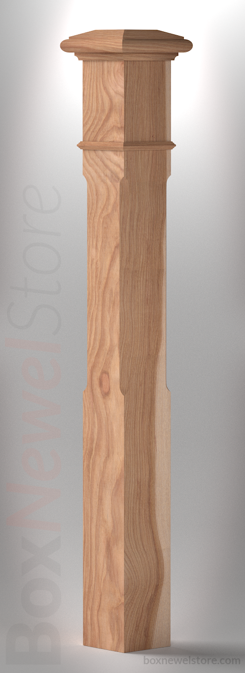 Box Newel Store Classic Hickory Box Newel, SFI Classic Cap with Cove, Chamfor Panels, Pencil Mold Trimband