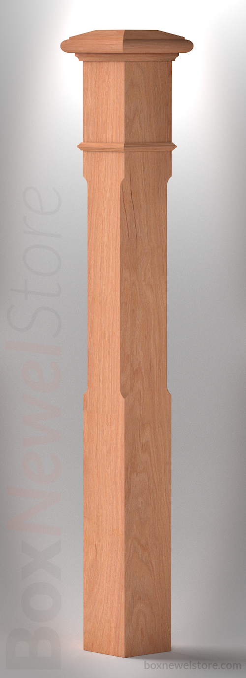 Box Newel Store Classic Red Oak Box Newel, SFI Classic Cap with Cove, Chamfor Panels, Pencil Mold Trimband