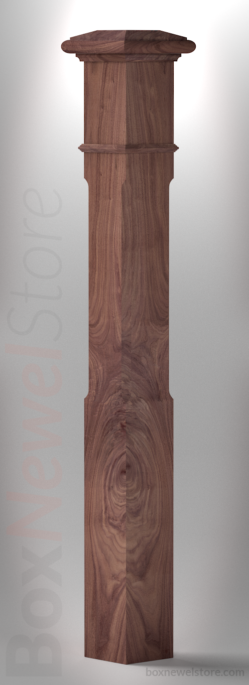 Classic Walnut Box Newel, SFI Classic Cap with Cove, Chamfor Panels, Pencil Mold Trimband
