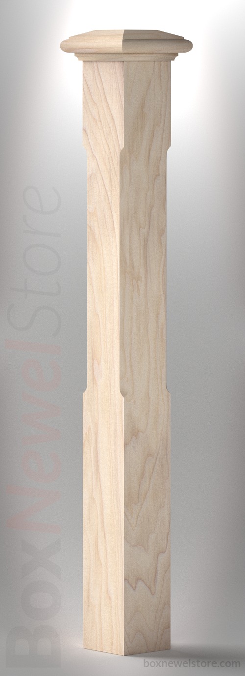 Box Newel Store Classic Poplar Box Newel, SFI Classic Cap with Cove, Chamfor Panels