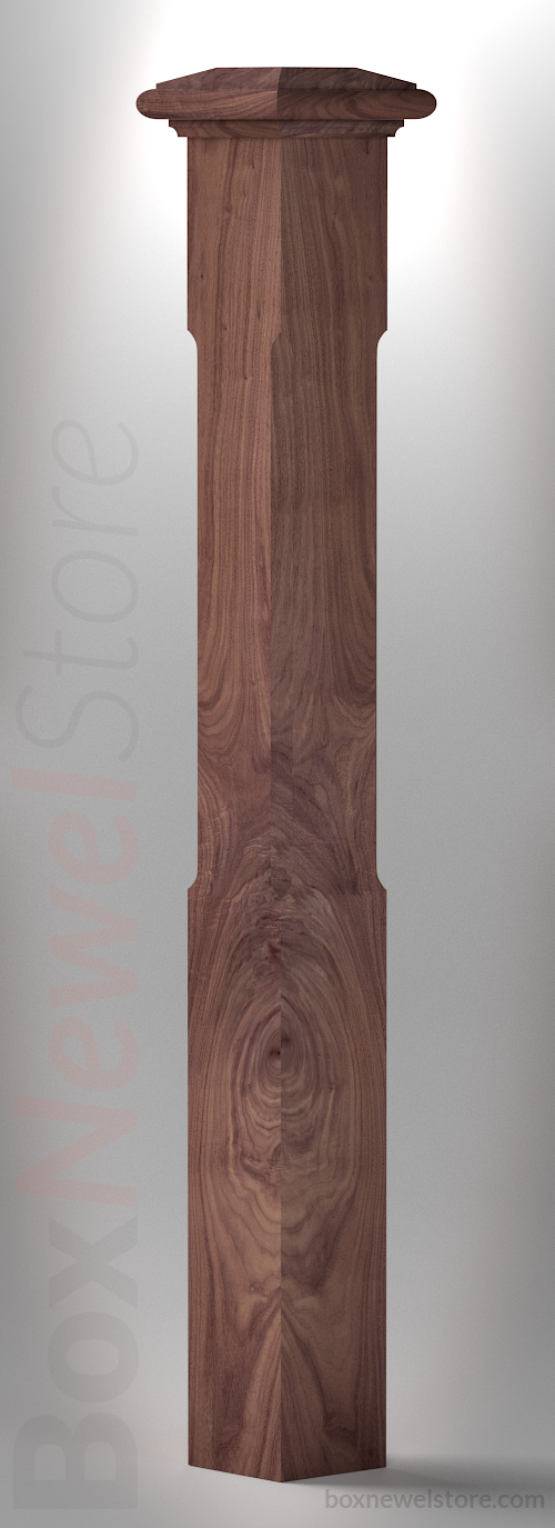 Box Newel Store Classic Walnut Box Newel, SFI Classic Cap with Cove, Chamfor Panels