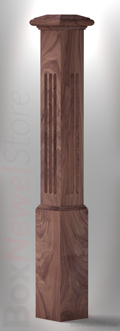 Box Newel Store Classic Walnut Box Newel, SFI Classic Cap with Cove, Flute Panels, Loose Basewrap with Cove