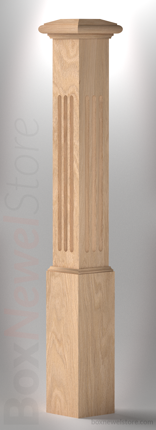 Box Newel Store Classic White Oak Box Newel, SFI Classic Cap with Cove, Flute Panels, Loose Basewrap with Cove