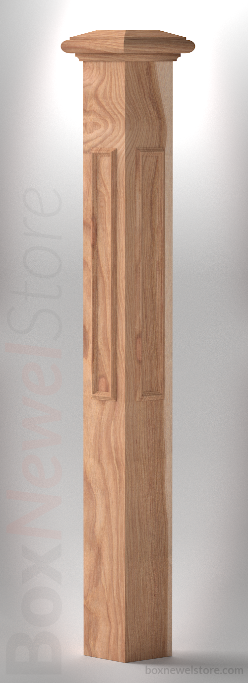 Box Newel Store Classic Hickory Box Newel, SFI Classic Cap with Cove, Lower Planton Panels