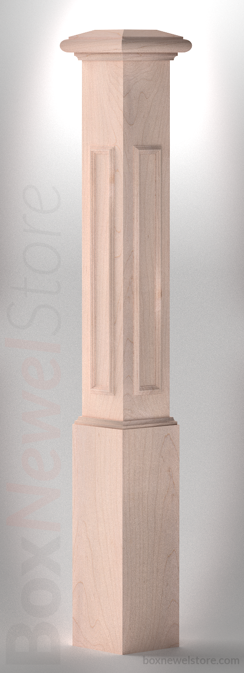 Box Newel Store Classic Soft Maple Box Newel, SFI Classic Cap with Cove, Lower Planton Panels, Loose Basewrap with Cove