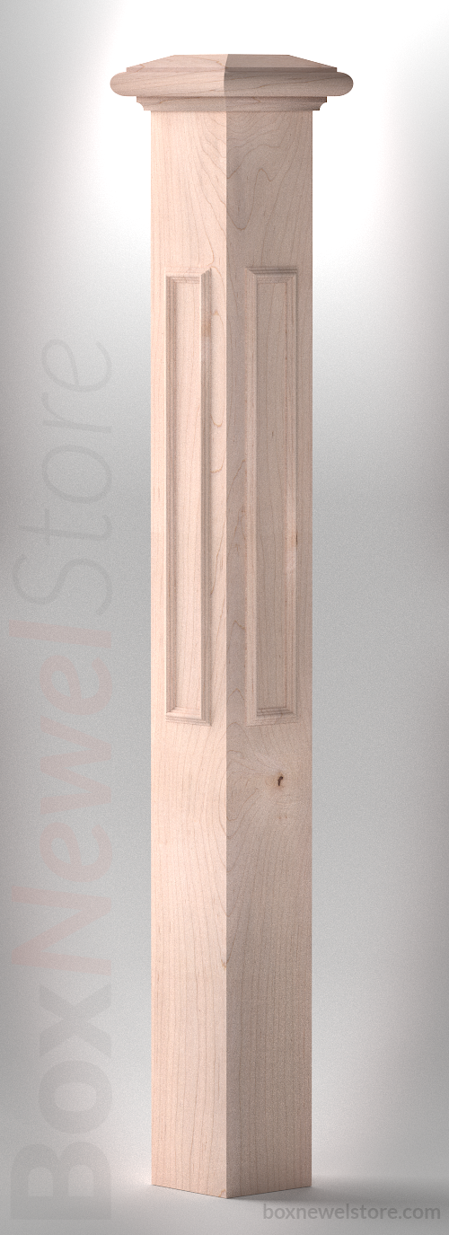 Box Newel Store Classic Soft Maple Box Newel, SFI Classic Cap with Cove, Lower Planton Panels