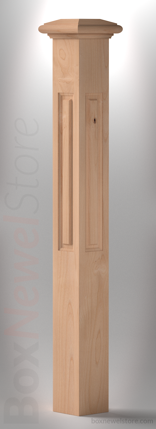Box Newel Store Classic Clear Alder Box Newel, SFI Classic Cap with Cove, Lower Raised Panels