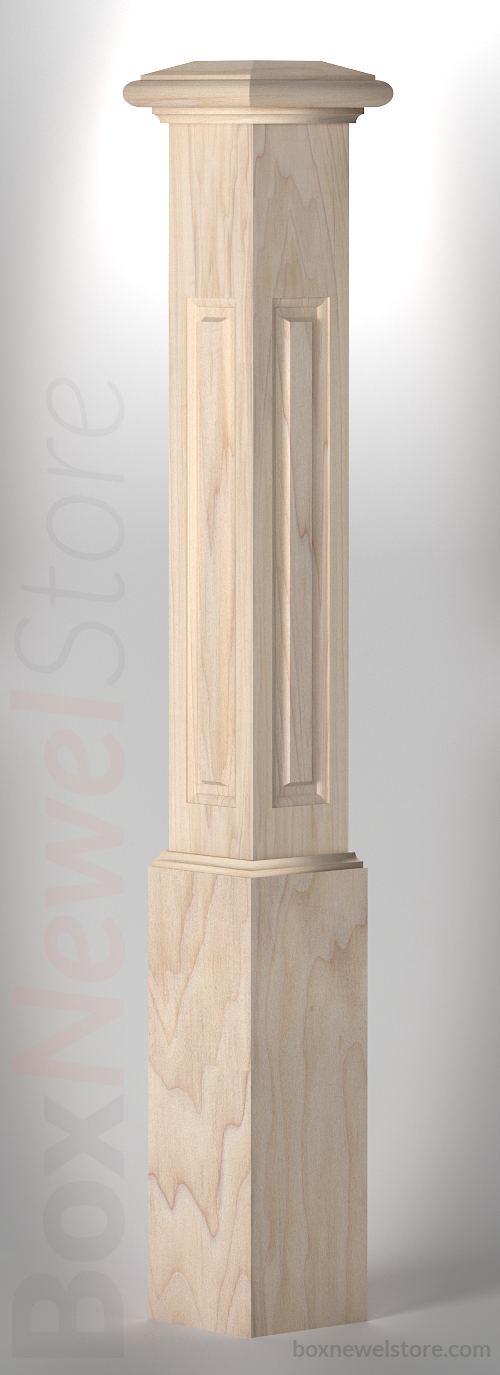 Box Newel Store Classic Paint Grade Box Newel, SFI Classic Cap with Cove, Lower Raised Panels, Loose Basewrap with Cove
