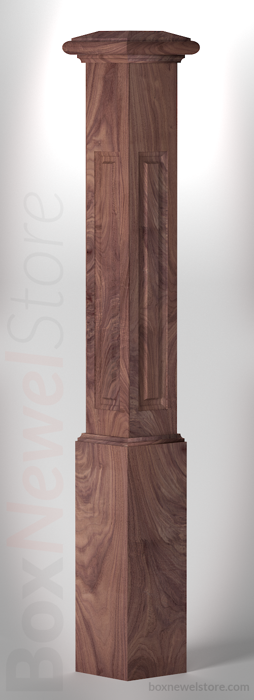 Box Newel Store Classic Walnut Box Newel, SFI Classic Cap with Cove, Lower Raised Panels, Loose Basewrap with Cove