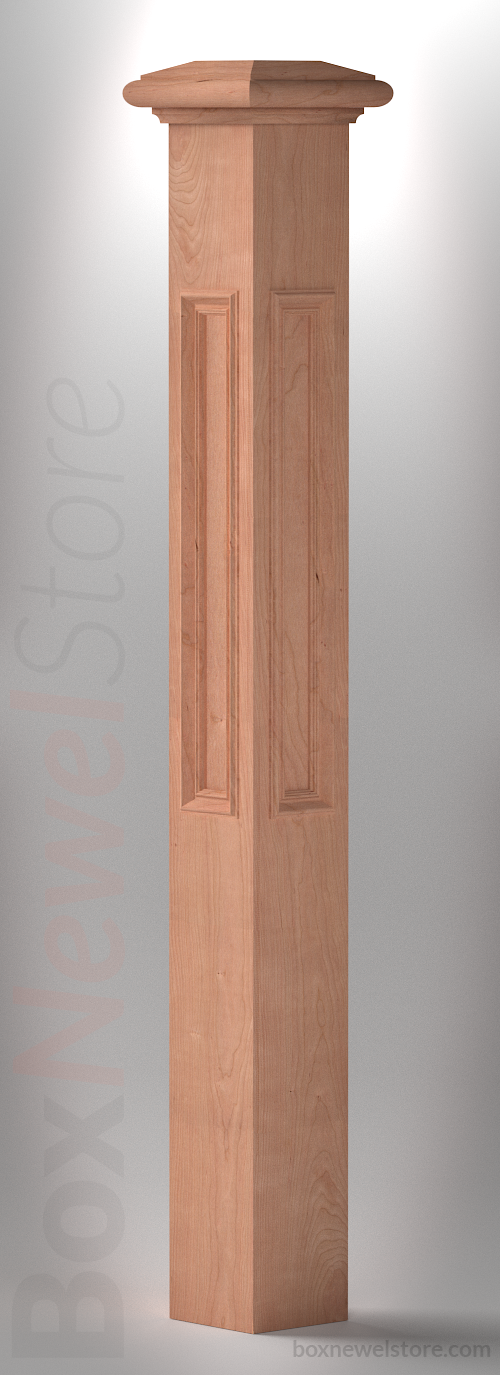 Box Newel Store Classic Cherry Box Newel, SFI Classic Cap with Cove, Lower Recessed Panels with Panel Cap