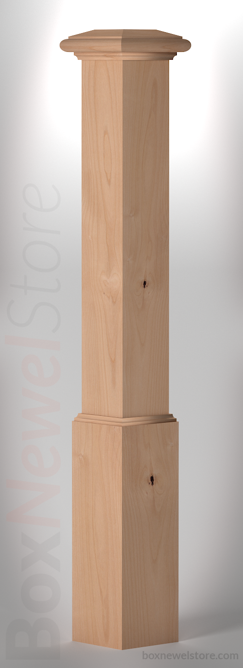 Box Newel Store Classic Clear Alder Box Newel, SFI Classic Cap with Cove, Loose Basewrap with Cove