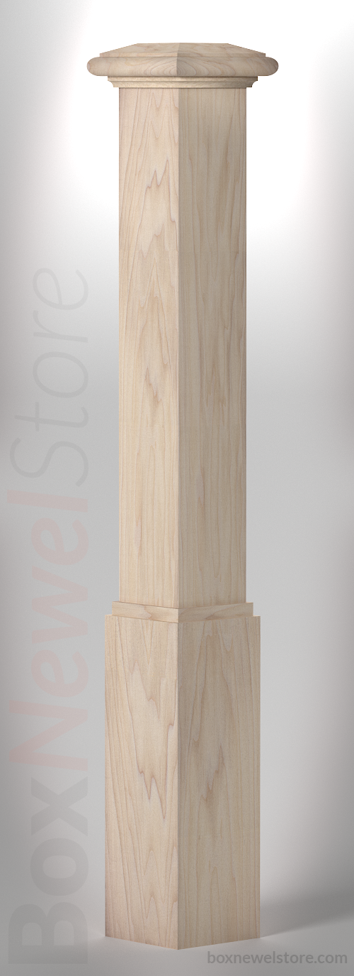 Box Newel Store Classic Poplar Box Newel, SFI Classic Cap with Cove, Loose Basewrap with Cove