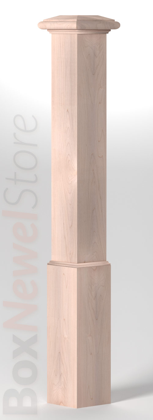 Box Newel Store Classic Soft Maple Box Newel, SFI Classic Cap with Cove, Loose Basewrap with Cove
