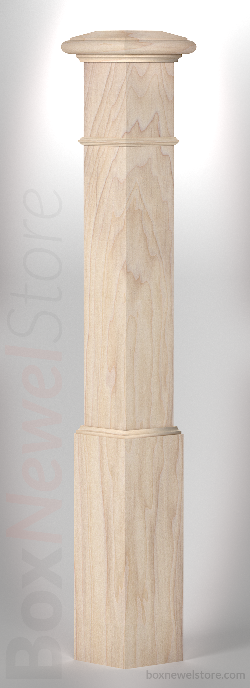 Box Newel Store Classic Poplar Box Newel, SFI Classic Cap with Cove, Pencil Mold Trimband, Loose Basewrap with Cove