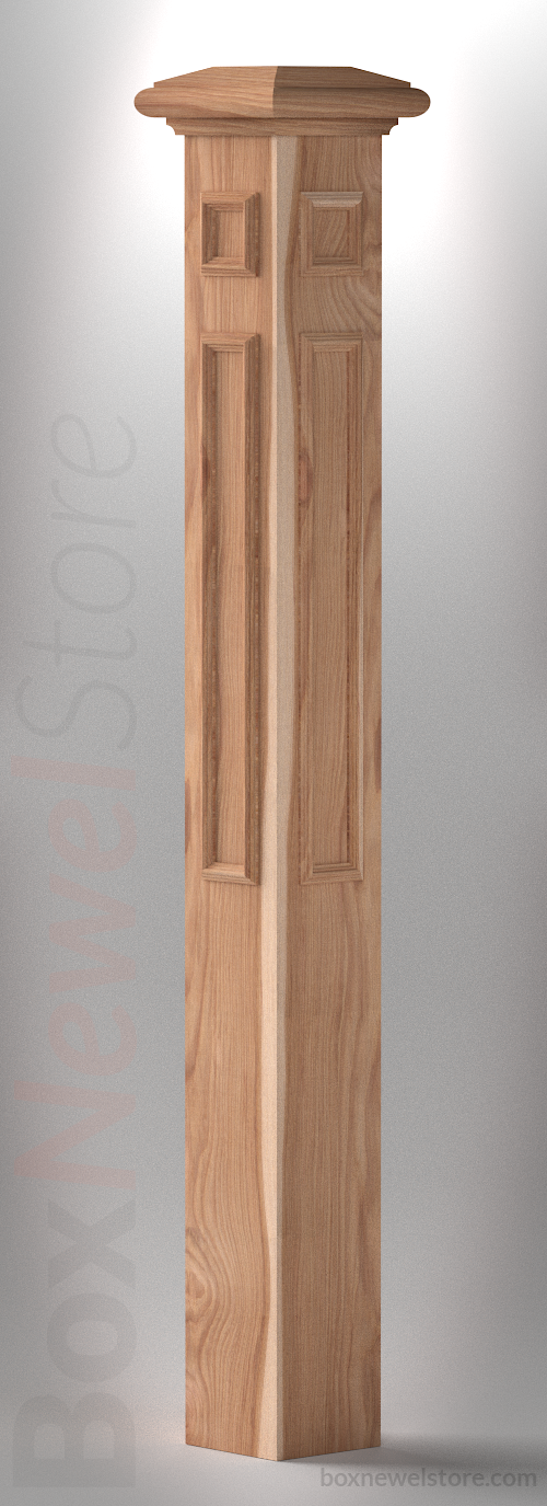 Box Newel Store Classic Hickory Box Newel, SFI Classic Cap with Cove, Upper-Lower Planton Panels