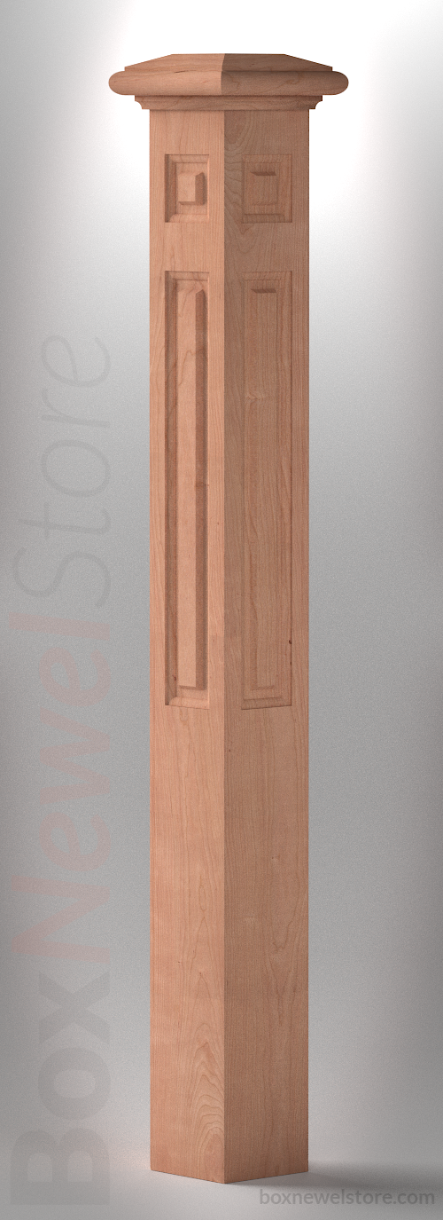 Box Newel Store Classic Cherry Box Newel, SFI Classic Cap with Cove, Upper-Lower Raised Panels