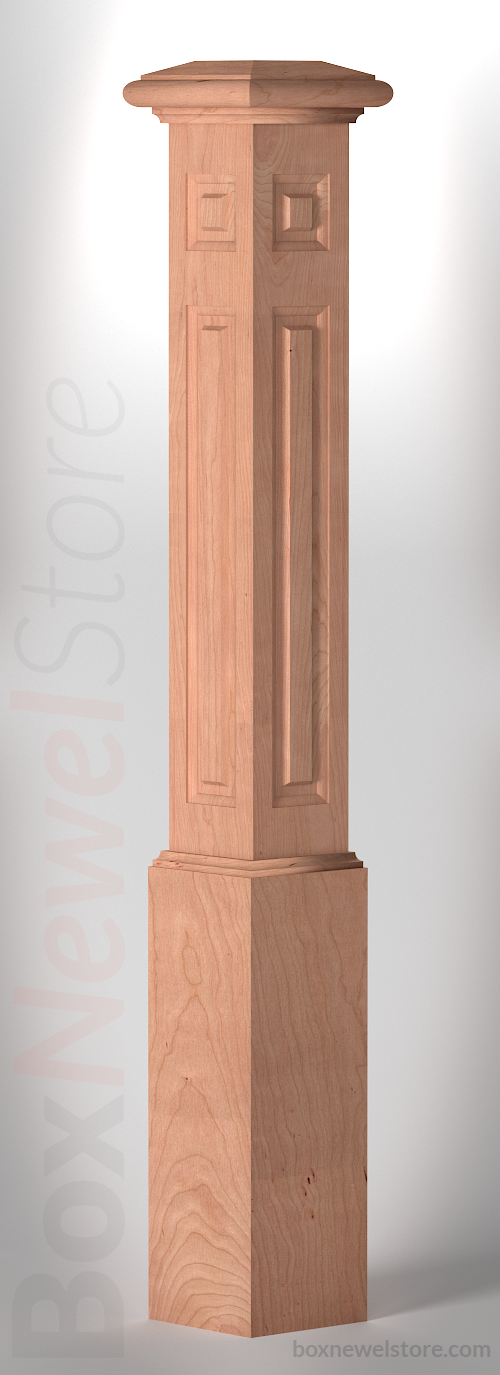 Box Newel Store Classic Cherry Box Newel, SFI Classic Cap with Cove, Upper-Lower Raised Panels, Loose Basewrap with Cove