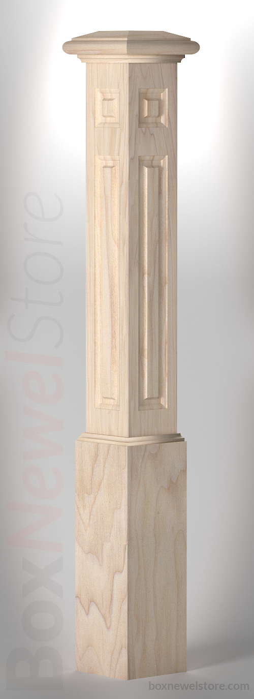 Box Newel Store Classic Paint Grade Box Newel, SFI Classic Cap with Cove, Upper-Lower Raised Panels, Loose Basewrap with Cove
