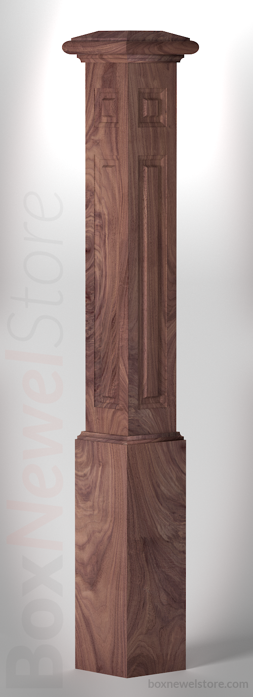 Box Newel Store Classic Walnut Box Newel, SFI Classic Cap with Cove, Upper-Lower Raised Panels, Loose Basewrap with Cove