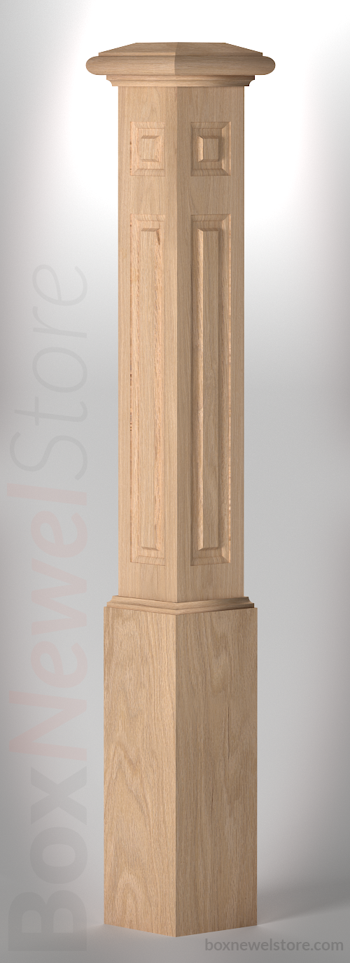 Box Newel Store Classic White Oak Box Newel, SFI Classic Cap with Cove, Upper-Lower Raised Panels, Loose Basewrap with Cove