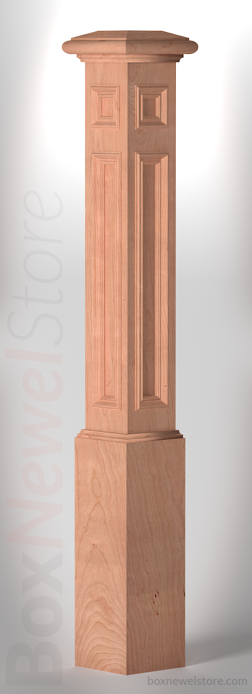 Box Newel Store Classic Cherry Box Newel, SFI Classic Cap with Cove, Upper-Lower Recessed Panels with Panel Cap, Loose Basewrap with Cove