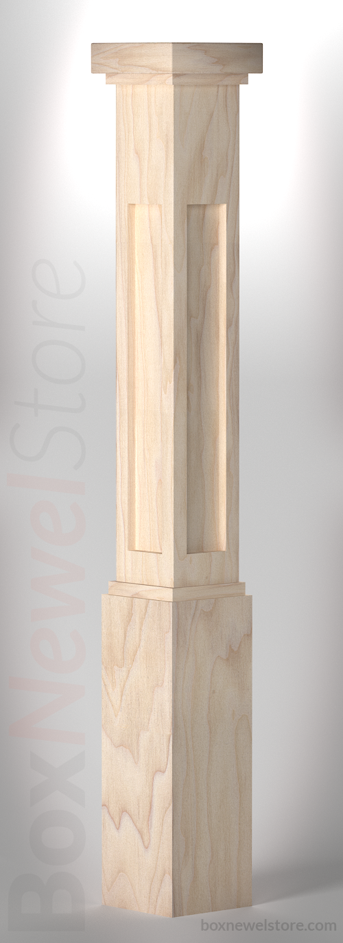 Box Newel Store Craftsman Poplar Box Newel, SFI Craftsman Cap with Square Trim, Craftsman Lower Recessed Panels, Loose Basewrap with Craftsman Trim