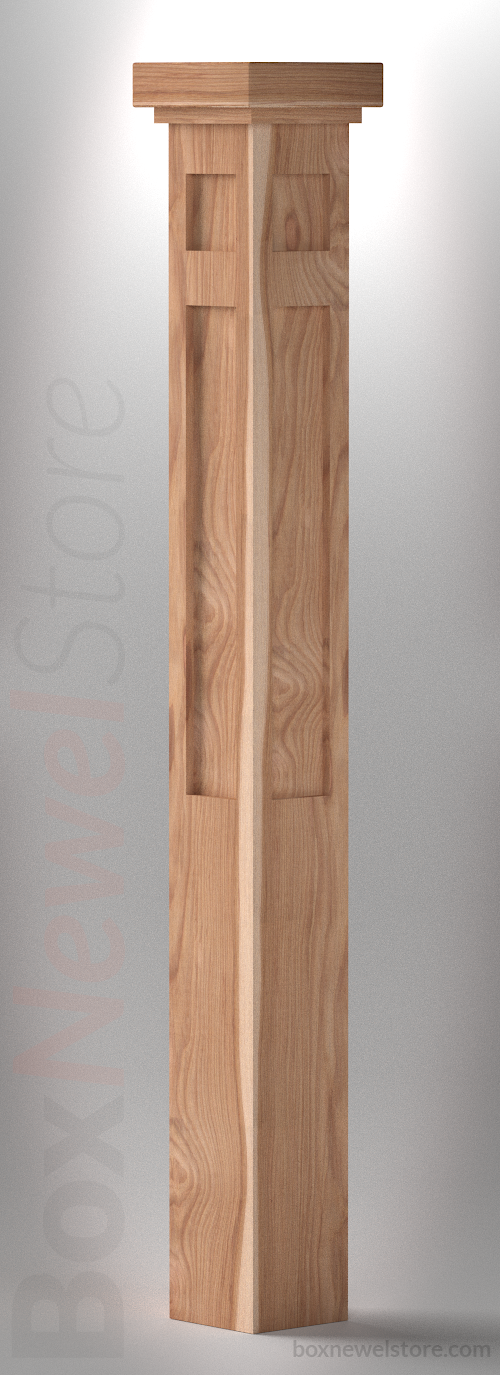 Box Newel Store Craftsman Hickory Box Newel, SFI Craftsman Cap with Square Trim, Craftsman Upper-Lower Recessed Panels