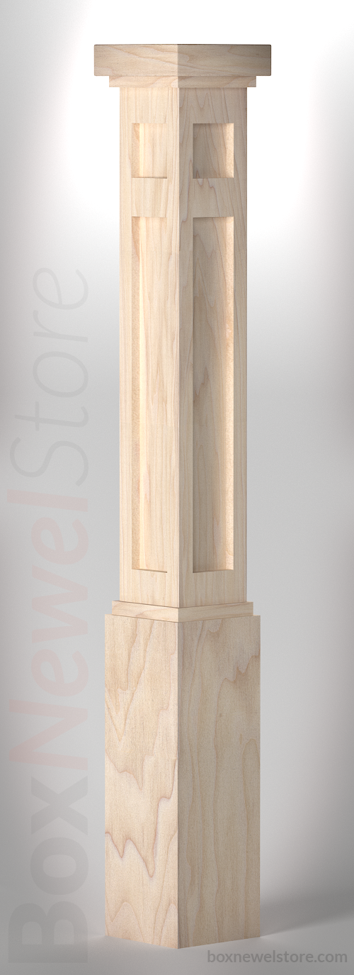Box Newel Store Craftsman Paint Grade Box Newel, SFI Craftsman Cap with Square Trim, Craftsman Upper-Lower Recessed Panels, Loose Basewrap with Craftsman Trim