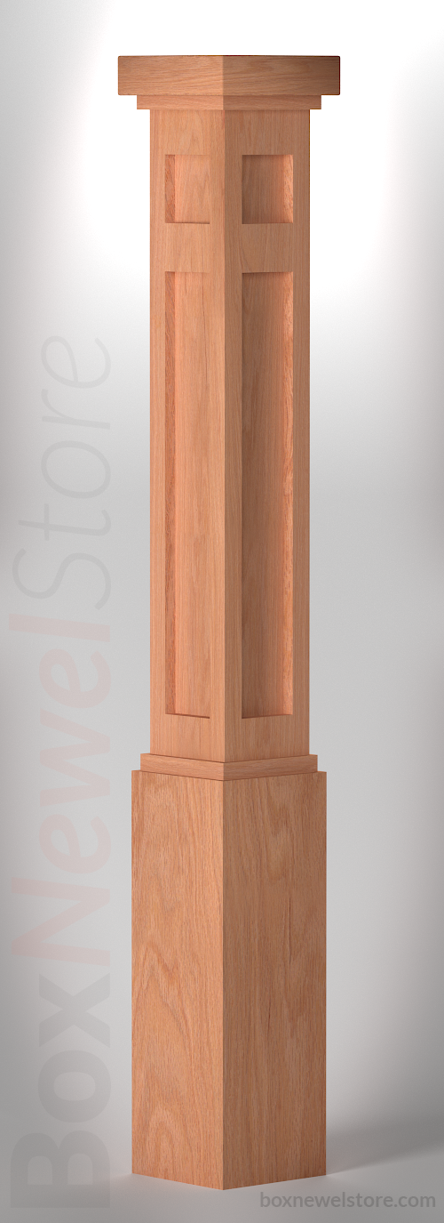 Box Newel Store Craftsman Red Oak Box Newel, SFI Craftsman Cap with Square Trim, Craftsman Upper-Lower Recessed Panels, Loose Basewrap with Craftsman Trim