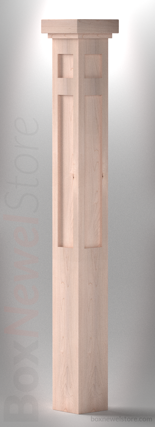 Box Newel Store Craftsman Soft Maple Box Newel, SFI Craftsman Cap with Square Trim, Craftsman Upper-Lower Recessed Panels