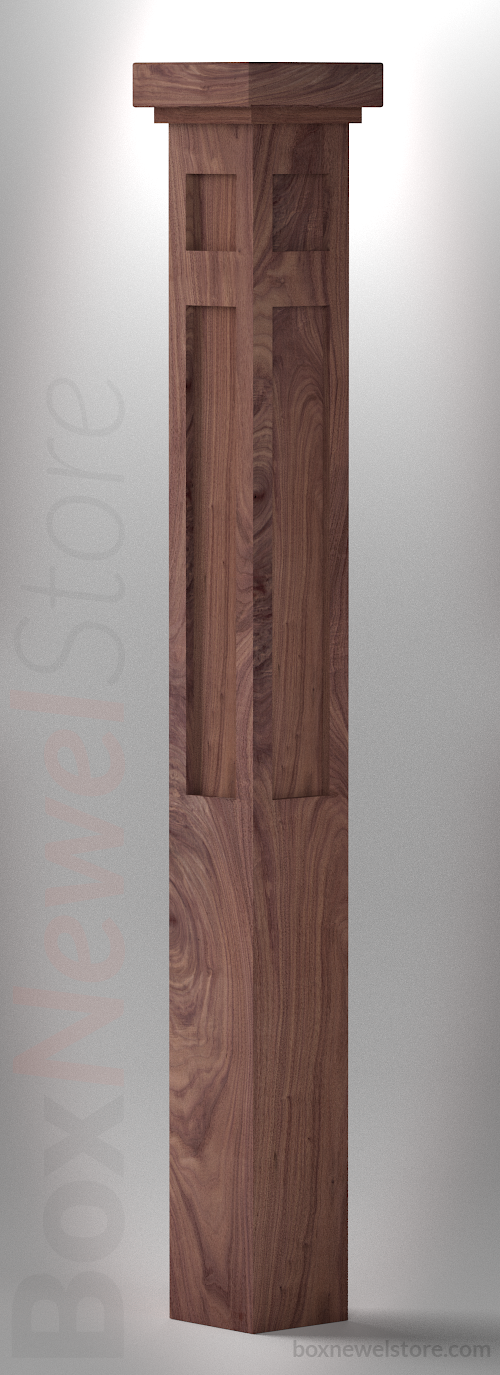 Box Newel Store Craftsman Walnut Box Newel, SFI Craftsman Cap with Square Trim, Craftsman Upper-Lower Recessed Panels