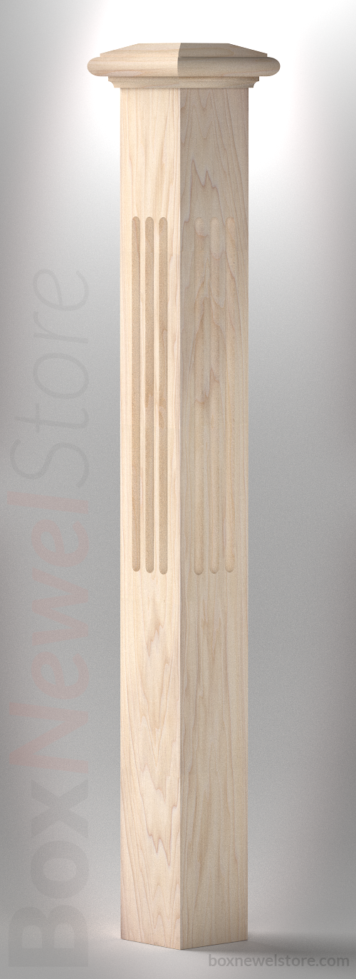 Craftsman Poplar Box Newel, SFI Classic Cap with Cove, Flute Panels