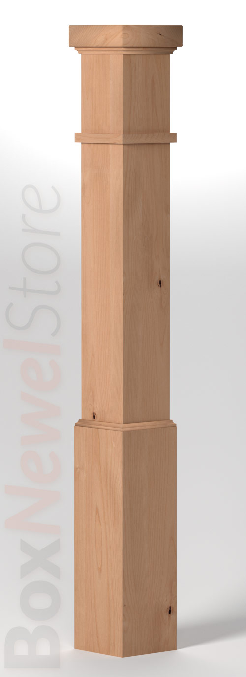 Box Newel Store Craftsman Clear Alder Box Newel, SFI Craftsman Cap with cove, Craftsman Trimband, Loose Basewrap with Cove