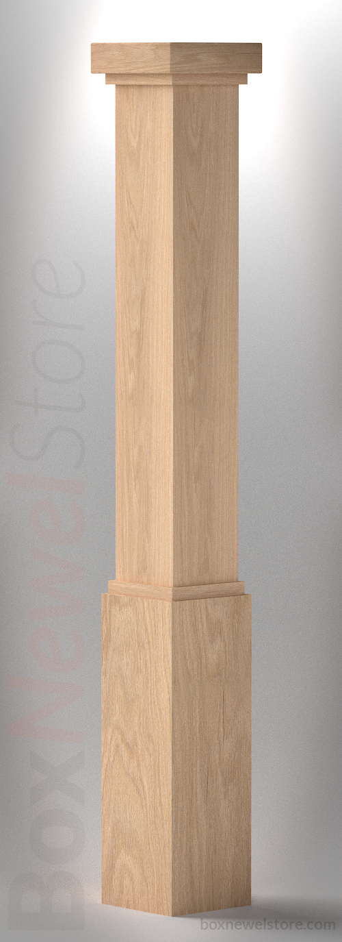 Box Newel Store Craftsman White Oak Box Newel, SFI Craftsman Cap with cove, Loose Basewrap with Cove